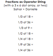 Of course, all of these strings can be modeled on a number line, too. Think about where your students are and which model would be appropriate. The dot array allows for counting, splitting and making of groups. When you are first grappling with the meaning of fractions, those dots can be really helpful as a sense-making tool. But we don’t want kids counting forever. So the number line forces students to think of number as magnitude or space, not quantity. Now 36 is a length or a distance in space, not 36 little dots that are arranged and provided for you.