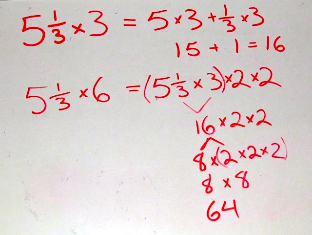 Do you use array model for this string? If so, what does 5 1/3 x 3 x 1/4 look like? Where is the answer? Just 1/4 of the whole which is 4? is the context for 5 1/3 x 3 x 1/4 the same for 5 1/3 x 3/4? “A wall is 5 1/3 sq feet. if one can of paint covers the whole wall, how much does 3/4 can of paint cover? Or how much does 3 one fourth cans of paint covers?